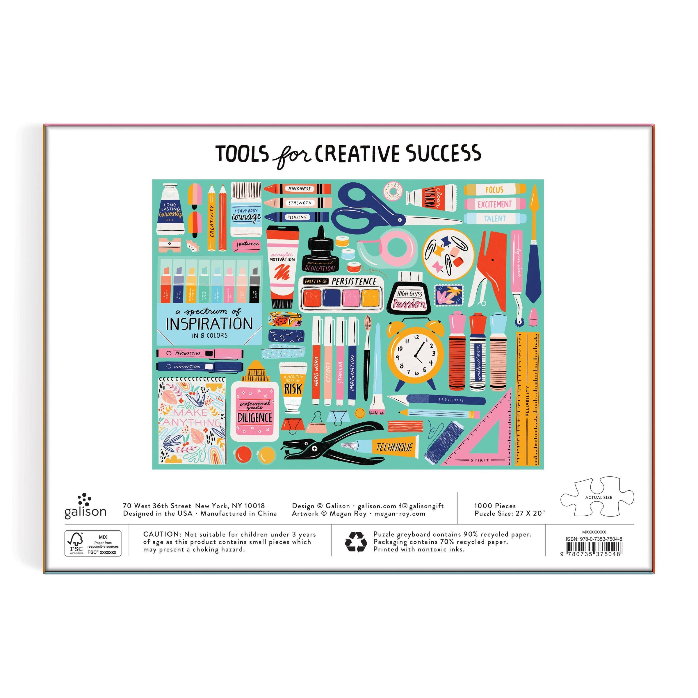 Tools for Creative Success 1000 Piece Puzzle from Galison showcases a variety of bright and colorful supplies like markers, pens, glue, scissors and more for a fun and challenging puzzle experience. Galison puzzles are packaged in matte-finish sturdy boxes, perfect for gifting, reuse, and storage. • 1000 pieces, Random cut • Box Size: 11.25 x 8.25 x 2", 86 x 210 x 51 mm, Puzzle Size: 27 x 20", 508 x 686 mm • Includes Color Puzzle Insert with Puzzle Image • Virtually No Puzzle Dust • Puzzle greyboard contains 90% recycled paper. Packaging contains 70% recycled paper and is made responsibly from FSC-certified material. Printed with nontoxic inks.